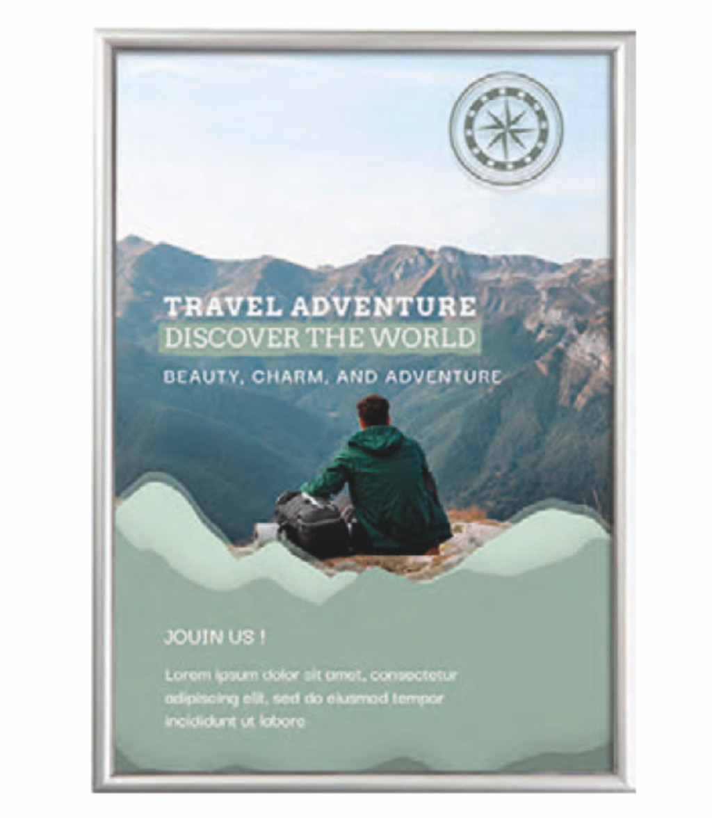 A plakátkeret termékcsalád kizárólag szabvány (A5-A4-A3-A2, B2-B1) papírméretekhez, natúr (ezüst színű) alumínium profilokkal rendelhető.
